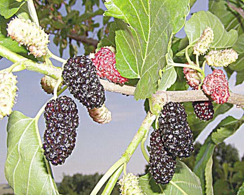 Шелковица известна на территории Приморского края еще со времен мохэ и чжурчжэней. Интенсивно растущее дерево редко вырастает до 10 метров, плоды темно-фиолетового цвета, напоминающие ягоду ежевики, съедобные, сладкие, с очень приятным запахом.