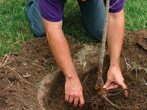 Концы всех наиболее толстых корней подрезают таким образом, чтобы плоскость среза была направлена к дну посадочной ямы.