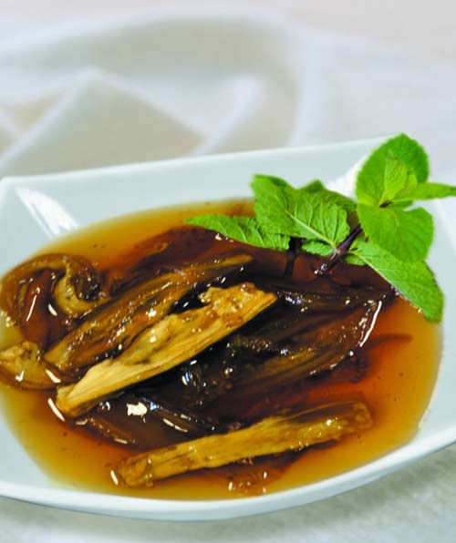 Для сиропа — полтора стакана воды, 400 г сахара, 25 г имбиря, цедра и сок от двух лимонов; затем добавить на 400 г огурцов 600 г сахара.