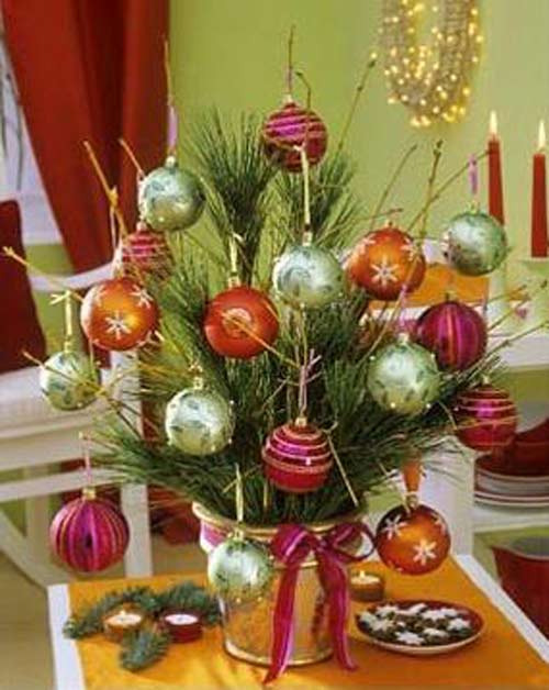 Если у вас на участке нет ни елки, ни маленькой сосны, можно прогуляться до ближайшего леска и нарядить дерево там, или даже назначить «елкой» любое из лиственных садовых деревьев. Игрушки для живой елки должны быть крупнее и ярче обыкновенных, иначе их просто не будет заметно. Можно купить набор больших пластиковых шаров.