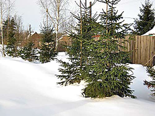 Также постоянно стряхиваем снег с ветвей после снегопадов.