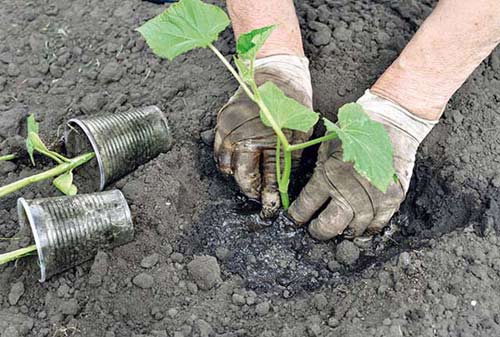3. Квадратно-гнездовой. На расстоянии 65-70 см друг от друга выкапывают посадочные лунки (гнезда) глубиной до 10 см и такого же диаметра. Дно ямки уплотняют, выкладывают в каждую по 7-10 семян, присыпают смесью земли и перегноя. После раскрытия первых листочков гнезда прореживают, оставляя по 4-5 самых крепких растений. Этот способ больше подходит для расстилочного способа выращивания короткоплетистых сортов.