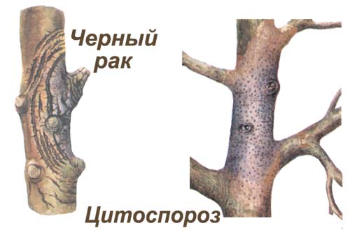 При усыхании ветвей и деревьев (бактериальный рак коры, цитоспороз, монилиальный ожог и др.) удаляют пораженные скелетные и обрастающие ветви с помощью обрезки и зачистки больных тканей коры до здоровых частей с последующей дезинфекцией открытой поверхности раствором фунгицидов (медный купорос, «Скор», «Фундазол» и др.) и закрытием ран замазками (садовый вар и др.).