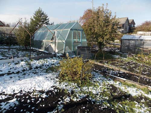После промерзания почвы все стелющиеся растения, ягодные кустарники и землянику укрывают на зиму разного рода материалами. На винограднике и на малине после осенней обрезки лозы и побеги пришпиливают к земле и перед самым замерзанием земли производят прикопку на зиму, укрывая слоем почвы до 30 см.