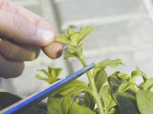 Каждый вытянувшийся стебель нарезают на несколько черенков, оставляя «пенёчек» в горшке не более 5-7 см. Черенки укореняют в торфяных таблетках или в воде, обязательно удаляя с них бутоны и цветы. В тепличке такие черенки за зиму укореняются, а весной активно начинают расти и зацветают раньше тех, что выращены из семян.