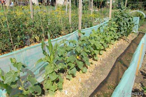 Для того, чтобы внутри грядки активно начали свою работу различные микроорганизмы, необходимо создать тепличные условия. Для этого грядку накрывают подготовленной пленкой, которая будет сохранять влагу и тепло. Органические отходы начнут в таких условиях активно разлагаться и создавать нужную для огуречной культуры питательную среду. Но перед накрытием грядку обильно поливают настоем древесной золы (на 10 литров воды – 1 стакан золы), а затем еще и раствором с использованием ЭМ-препаратов.
