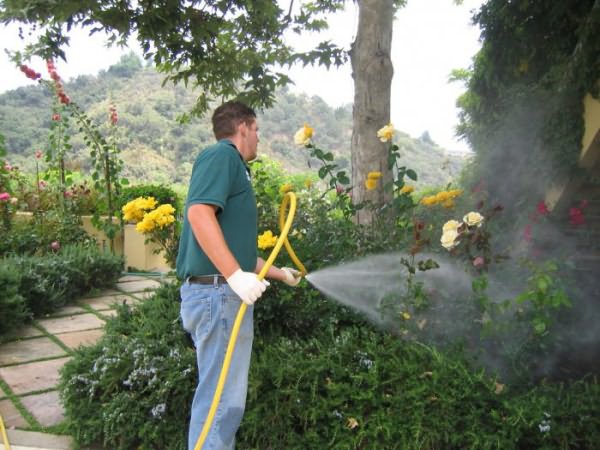 Проводить опрыскивание лучше всего рано утром или поздно вечером. Погода должна быть ясной, сухой и безветренной, в противном случае эффективность средства значительно уменьшиться. На операторе обязательно должен быть защитный костюм, очки, маска и перчатки.