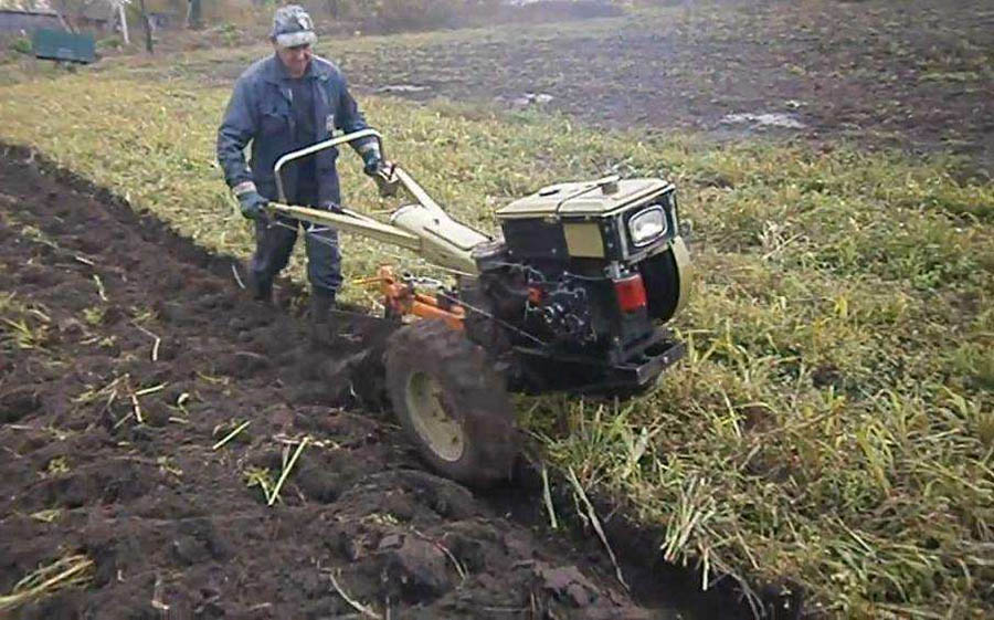 Работа на полях среднего размера (до 60 соток) требует помощи более мощного агрегата. При условии предварительно разрыхленного грунта с посадкой, окучиванием и снятием урожая справится мотоблок среднего класса тяжести с дизельным мотором.